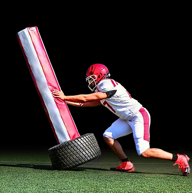 The POWER POST offers a six-sided pad that is perfect for teaching hand placement and quick hands! Each panel is 6” wide which forces a hand strike with tight hands and thumbs up. The multi-sided pad is the perfect surface to strike and squeeze with the fingers. Teach eye focus, tight hands and a choking grip on the pad. Ideal for developing the Long Arm! If the Power Post is not struck the correct way, it will spin on the post. Use it out of a 6-point, 3 point or 2-point stance. Heavy weighted tire provides stability and allows the Power Post to be moved to different spots on the field. Perfect warm up station during pre-practice or off-season workouts. Pad is made in alternating colors to highlight the different angles of the pad.